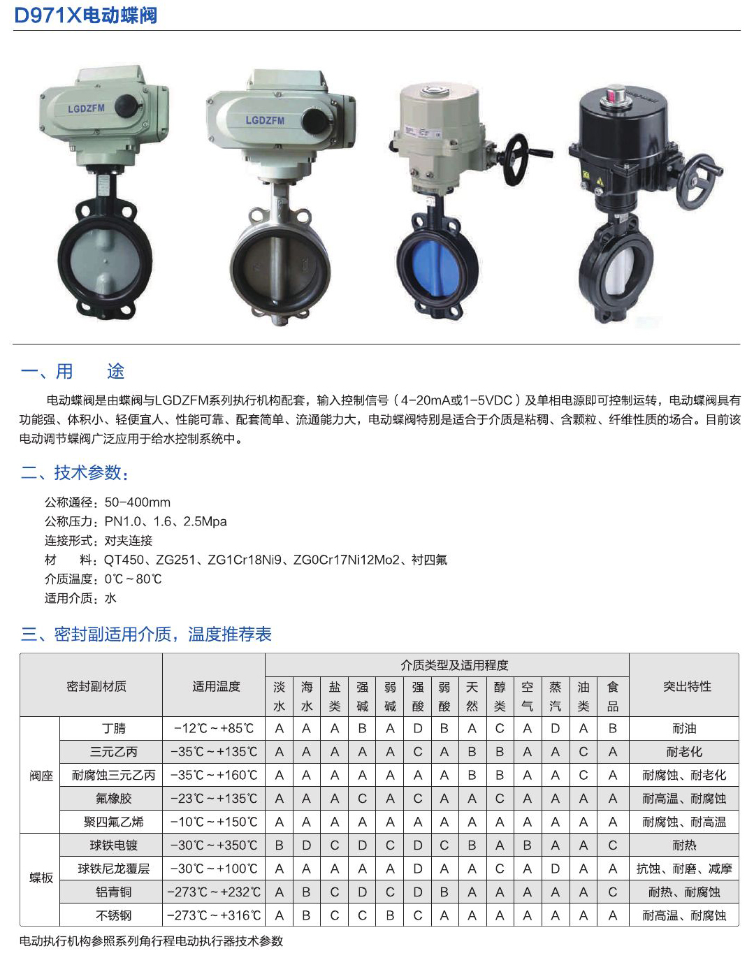 - 電動蝶閥是由蝶閥與LGDZFM系統(tǒng)執(zhí)行機(jī)構(gòu)配套,輸入控制信號(4-20mA或1-5VDC)及單相電源即可控制運(yùn)轉(zhuǎn),電動蝶閥具有功能強(qiáng)、體積小、輕便宜人、性能可靠邊、配套簡單、流通通力大,電動蝶閥特別是適合于介質(zhì)是粘稠、含顆粒、纖維性質(zhì)的場合。