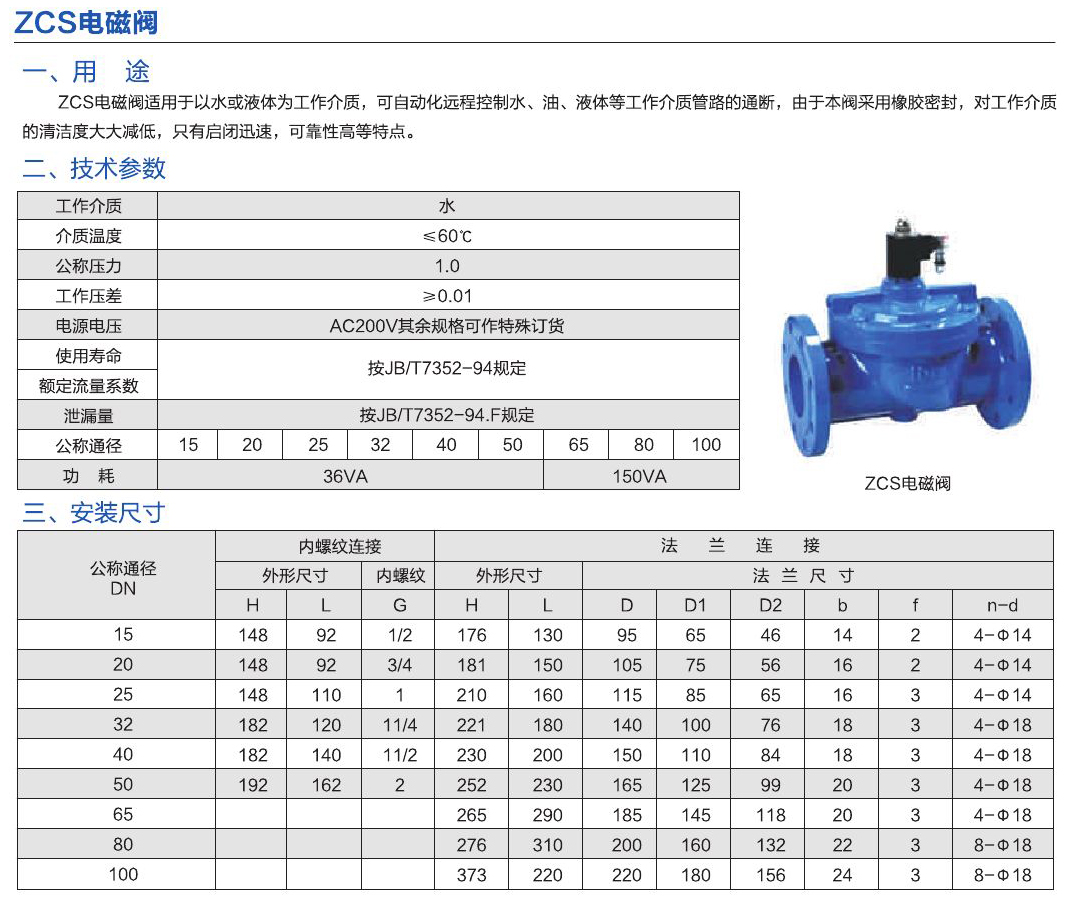 - ZCS電磁閥適用于以水或液體為工作介質(zhì),可自動(dòng)化遠(yuǎn)程控制水、油、液體等工作介質(zhì)管路的通斷,由于本閥采用橡膠密封,對(duì)工作介質(zhì)同的清潔度大大減低,只有啟閉迅速,可靠性高等特點(diǎn)。