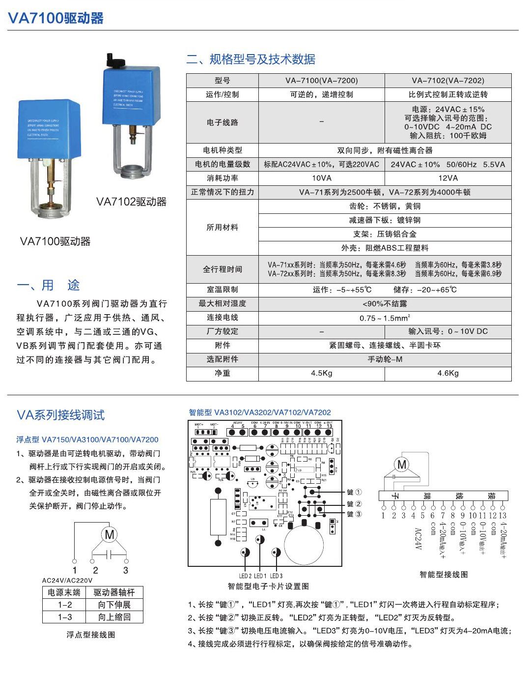 - VA7100系列閥門驅(qū)動(dòng)器為直行程執(zhí)行器,廣泛應(yīng)用于供熱、通風(fēng)、空調(diào)系統(tǒng)中,與二通或三通的VG、VB系列調(diào)節(jié)閥門配套使用。