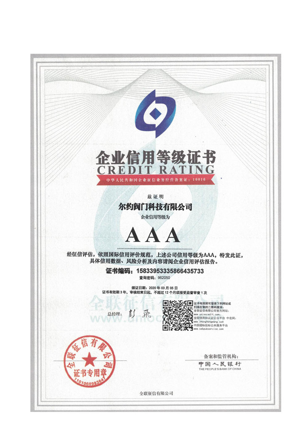 企業(yè)信用等級(jí)AAA級(jí)證書(shū)