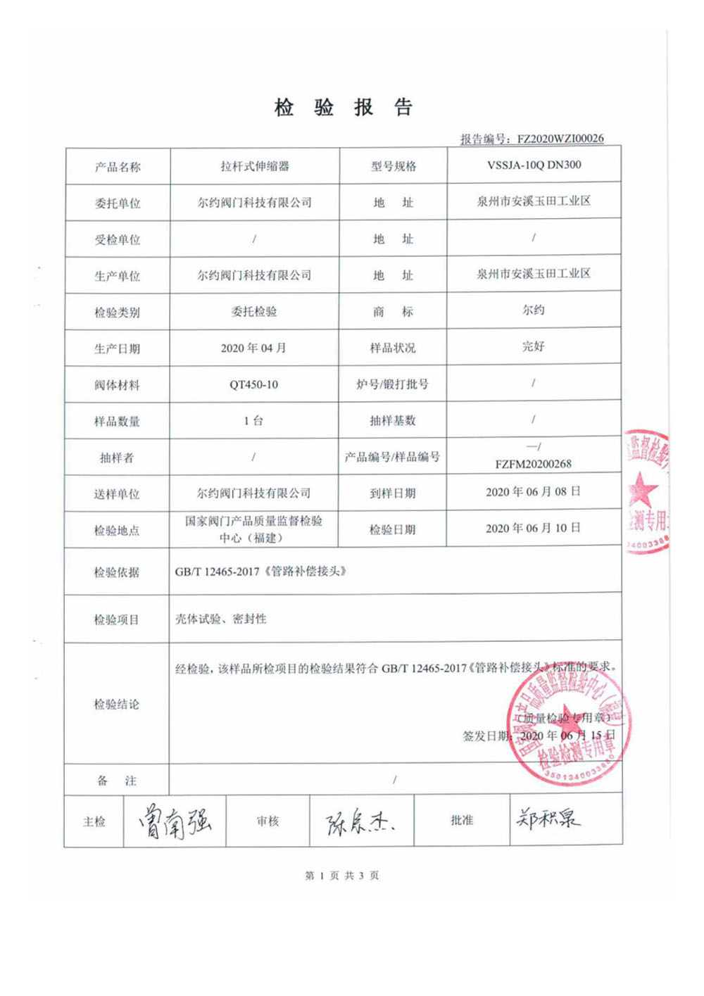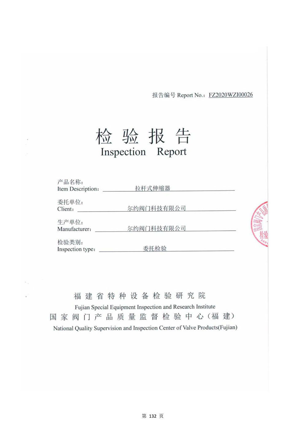 拉桿式伸縮節檢驗報告