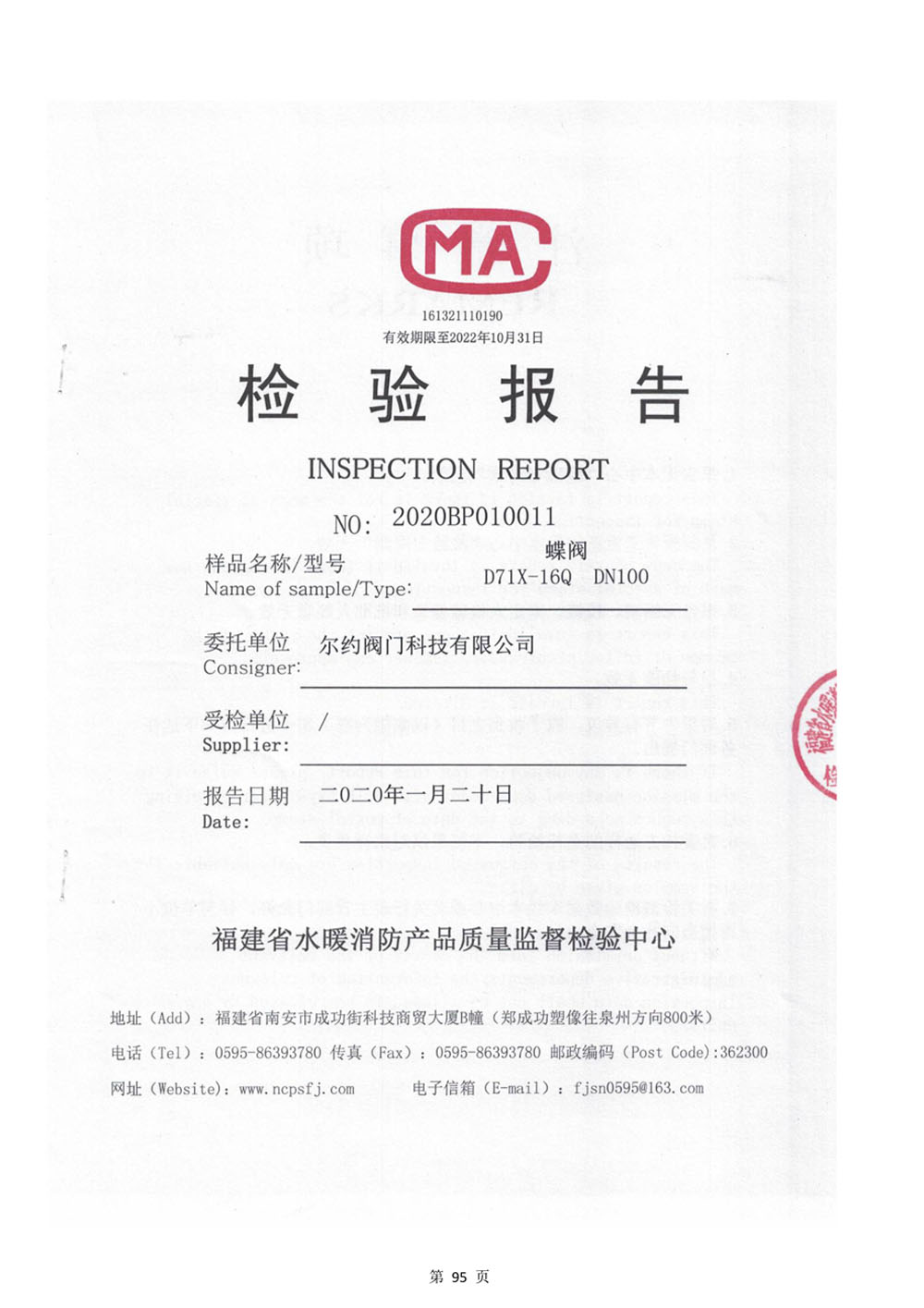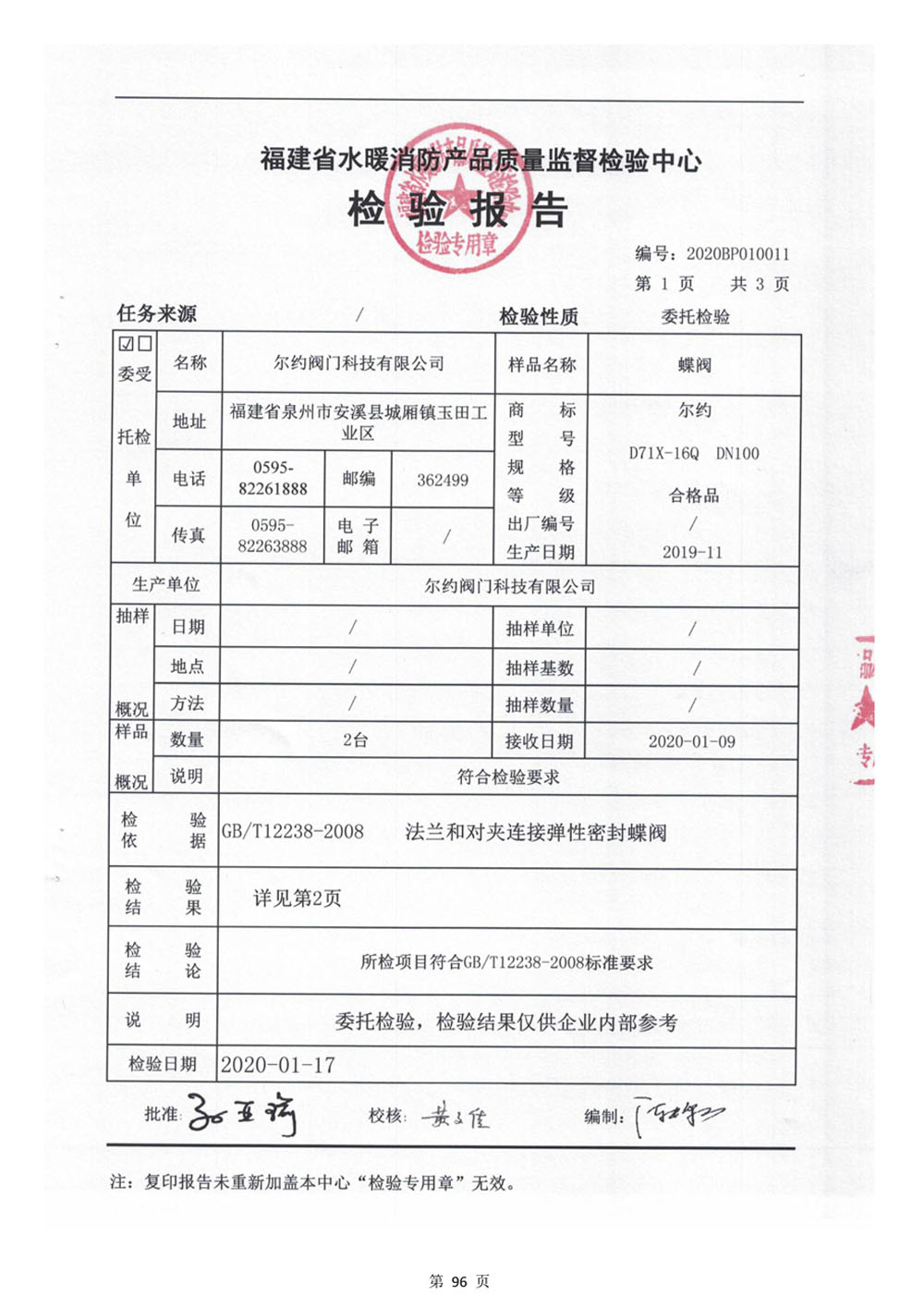 法蘭蝶閥檢驗(yàn)報(bào)告