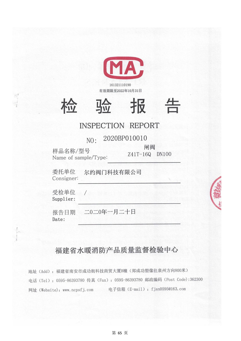 閘閥檢驗報告