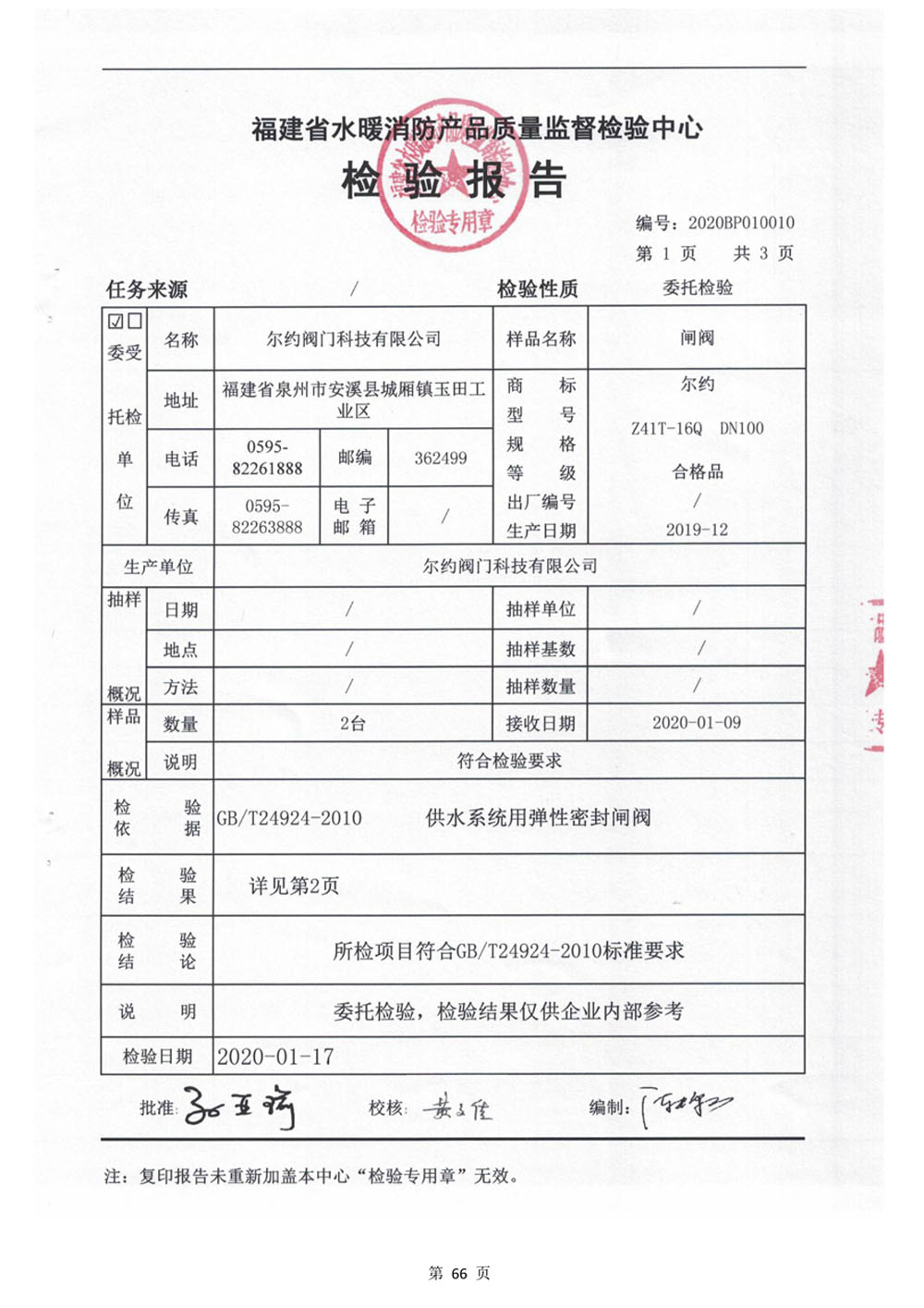 給排水用軟密封閘閥檢驗報告