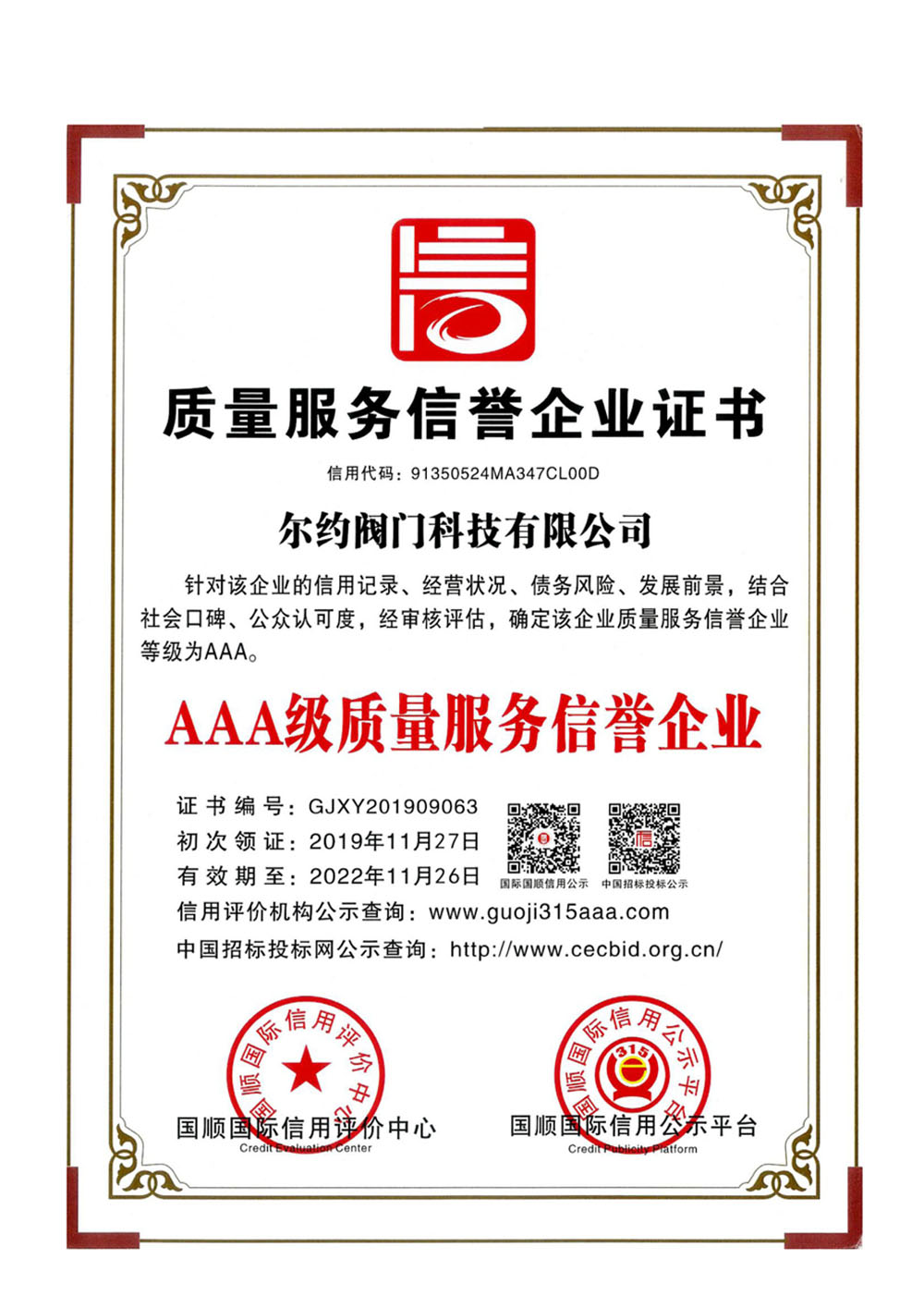 AAA級(jí)質(zhì)理服務(wù)信譽(yù)企業(yè)