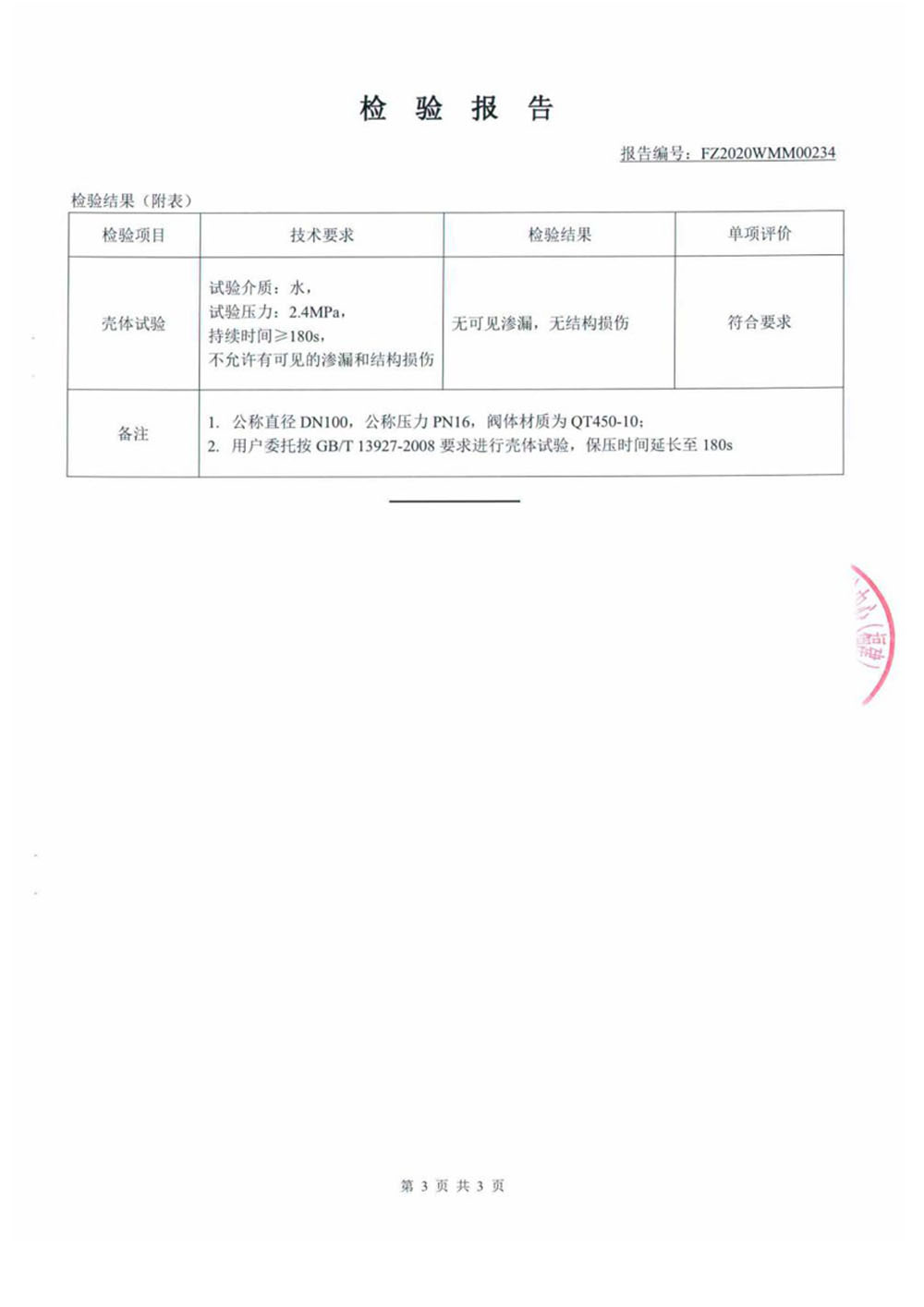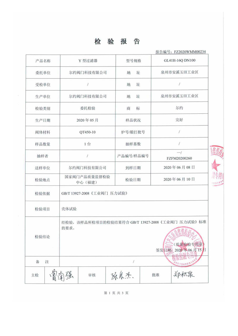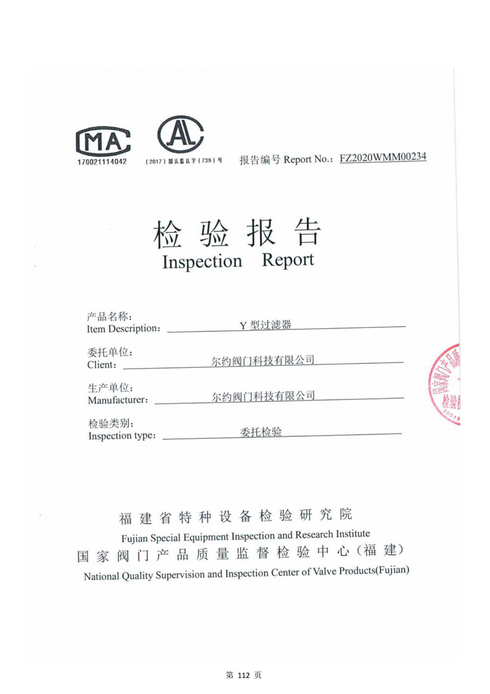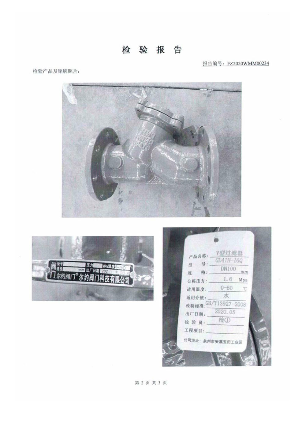 Y型過濾器檢驗報告