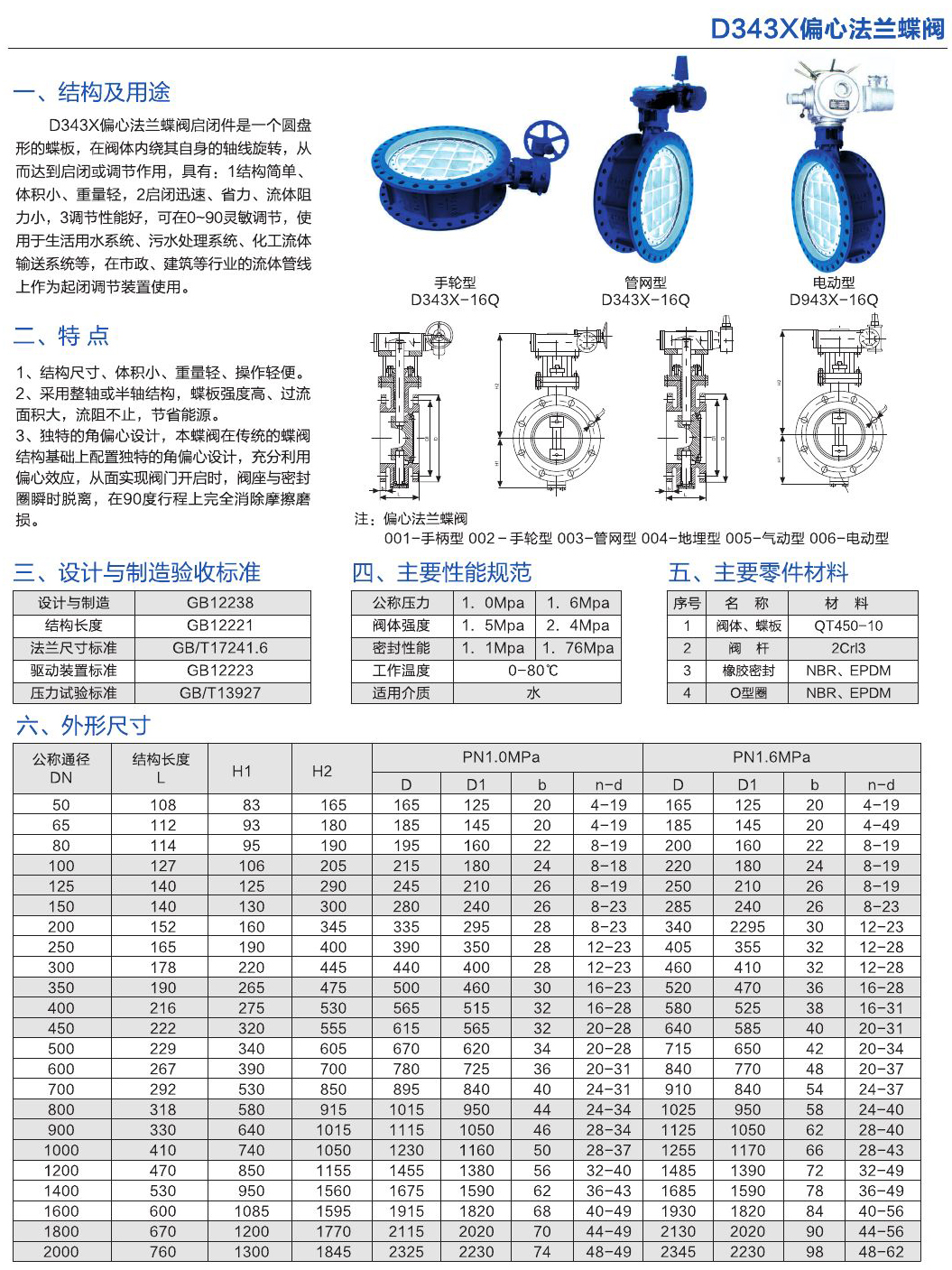 D343X偏心法蘭蝶閥啟閉件是一個圓盤形的蝶板,在閥體內繞其自身的軸線旋轉,從而達到啟閉或調節作用,具有:1結構簡單、體積小、重量級輕,2啟閉迅速、省力、流體阻力小,3調節性能好,可在0-90靈敏調節,使用于生活用水系統、污水處理系統、化工流體輸送系統等,在市政、建筑等級行業的流體管線上作為起閉調節裝置使用。