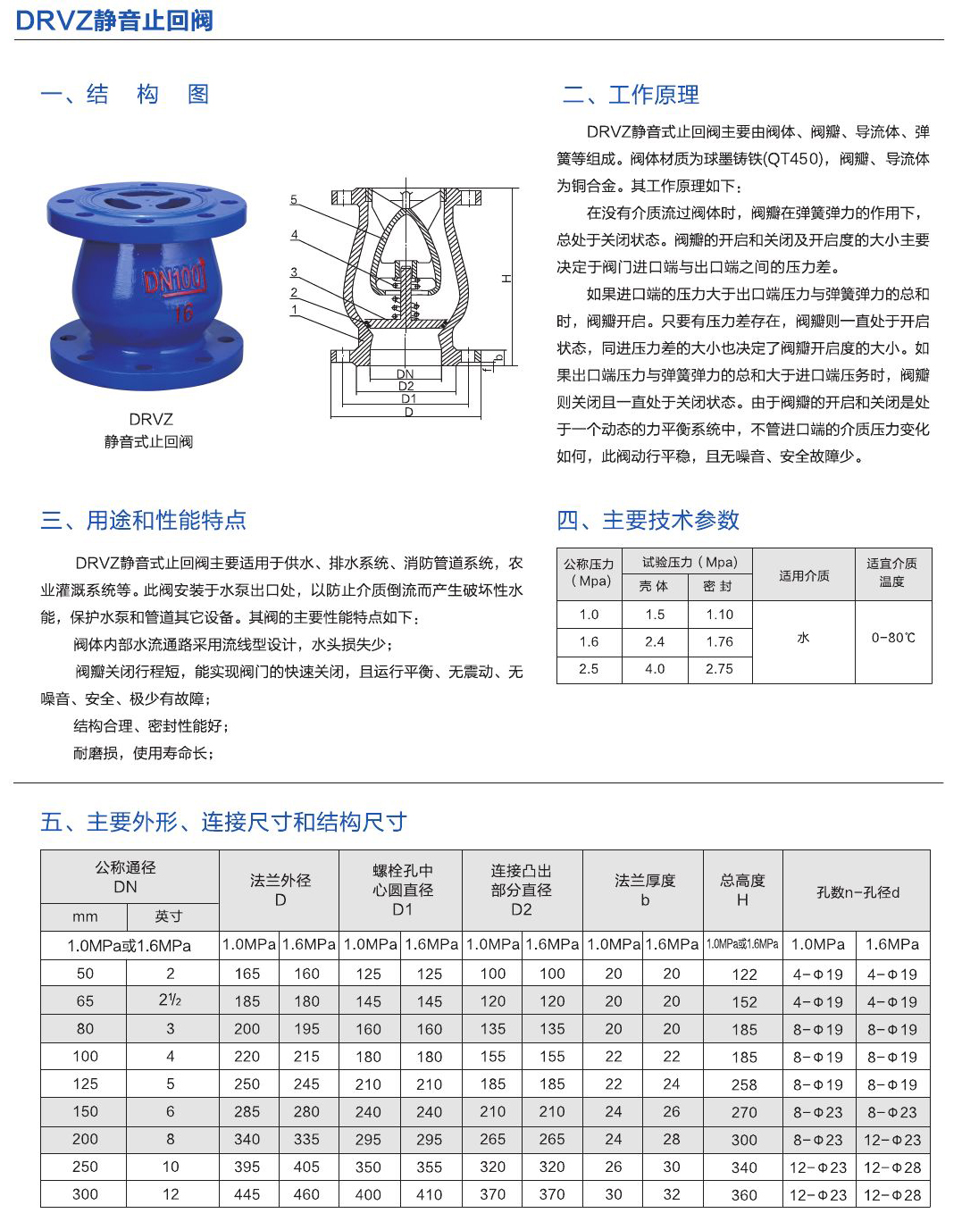 主要適用于供水、排水系統、消防管道系統,農業灌溉系統等。此閥安裝于水泵出口處,以防止介質倒流而產生破壞性水能,保護水泵和管道其它設備。