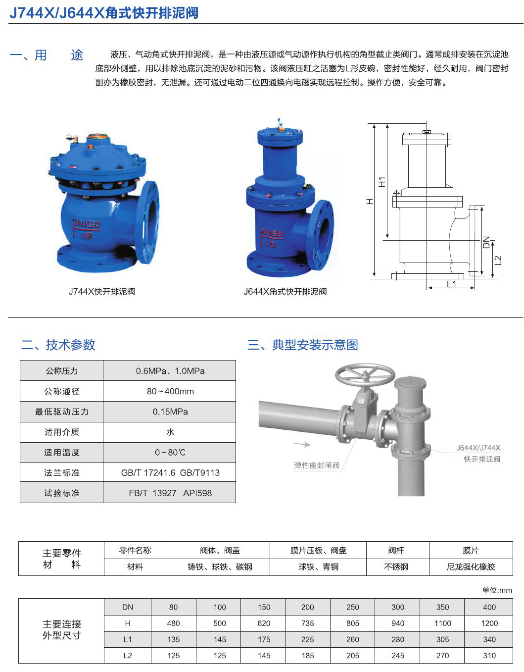 液壓、氣動角式快開排泥閥,是一種由液壓源或氣動源作執行機構的角型截止類閥門。
