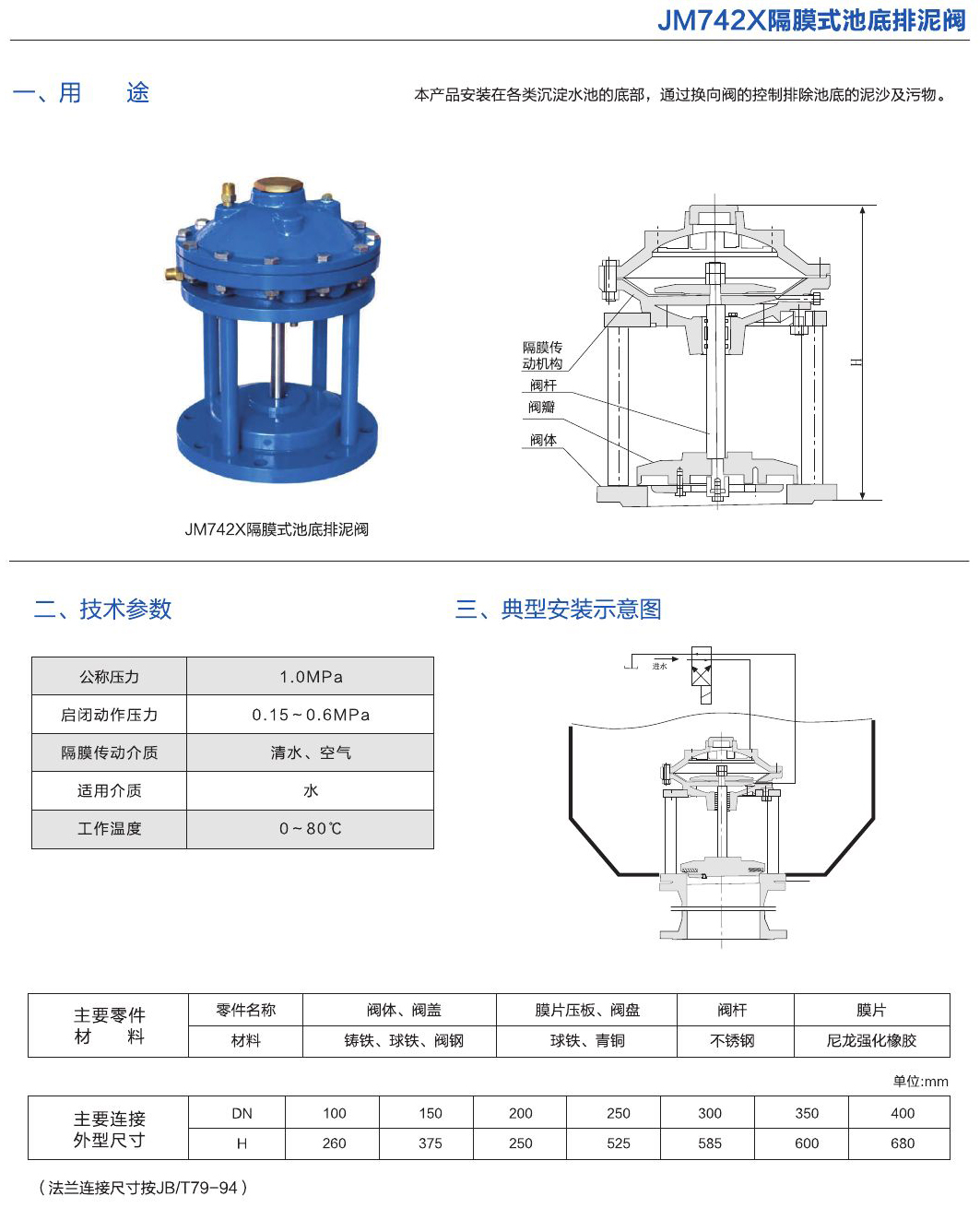 本產品安裝在各類沉淀水池的底部,通過換向閥的控制排除池底的泥沙及污物。